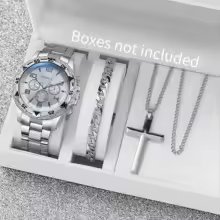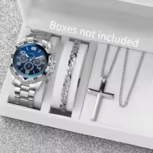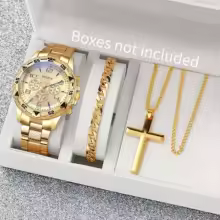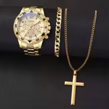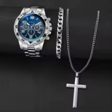 3PCS/Set Fashion Men's Quartz Watch Luxury Large Dial Men Business Watches Necklace Bracelet Set Reloj Hombre(Without Box)