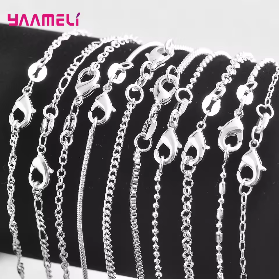 Authentic 5PCS Solid 925 Sterling Silver Jewelry Chains Necklace with Lobster Clasps fit Men Women Pendant 18 Designs 16-30 Inch